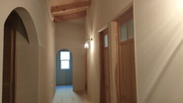 新築モデルハウス ☆ 建具の取付 こんにちは!平です!新しい一週間が始まりました。みやま市モデルハウス新築工事の現場では、内部の仕上げ工事が進んでいます。 I田木工所さんにより、建具の搬入、建て付けが進められました。個室の出入口、トイレ・脱衣室の出入口の建具です。建て付... 2026.02.16新築