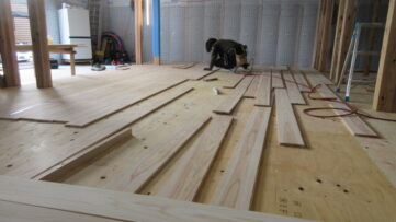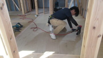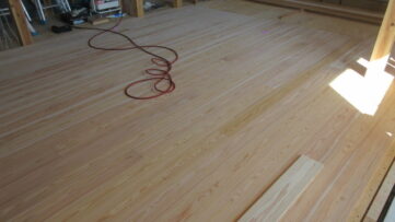 新築自社製フローリング こんにちは、高山です。朝晩の冷え込みと日中の気温差で体調を壊される方が多いのでは💦 しっかり体調管理してこの季節を乗り切りましょう!筑後市 K様邸新築工事 ですが今日も木工事を進めています。 木工事は、河口さんです。今日はLDKの無垢(杉... 2025.10.27新築