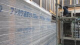 今日は、T取大工さんと村崎さんコンビでガレージ内の内張り工事です。1m×3mの9mm合板を一枚づつ張っていきます。