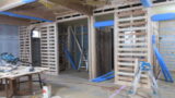 今日は、新しい器具に対応した排水給水の配管工事と、電気配線工事を進めて頂きました。それに並行して、内装下地として、ボード張りやベニヤ張りを進めていっています。