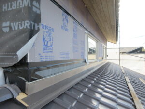 不足分のサッシも昨日取付て、瓦の水上熨斗板金も入り、外壁防水シート(ウルト)も今日ですべて完了となりました!来週からは外壁通気胴縁入れも進んでいきそうです。K様、引き続きよろしくお願い致します。