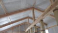 木組材と断熱材は気密テープで、しっかりと塞いでいきます。