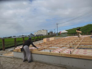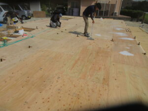 その上に、厚さ24mmの合板を敷き詰めてしっかりとした床下地ができました。