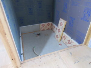 明日、システムバスの設置なので今日はシスバススペースの基礎立上り断熱材入れを河口さんがやってくれています!