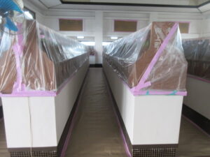 柳川市 N納骨堂様天井改修工事 ですが今日から納骨棚、床、開口などの養生を始めました!