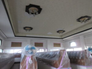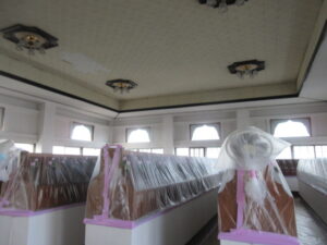 柳川市 N納骨堂様天井改修工事 ですが今日で床養生、納骨棚の養生が終わりました!
