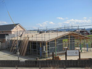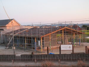 みやま市 モデルハウス新築工事の現場では、内部木工事と屋根工事がしっかりと進められています。