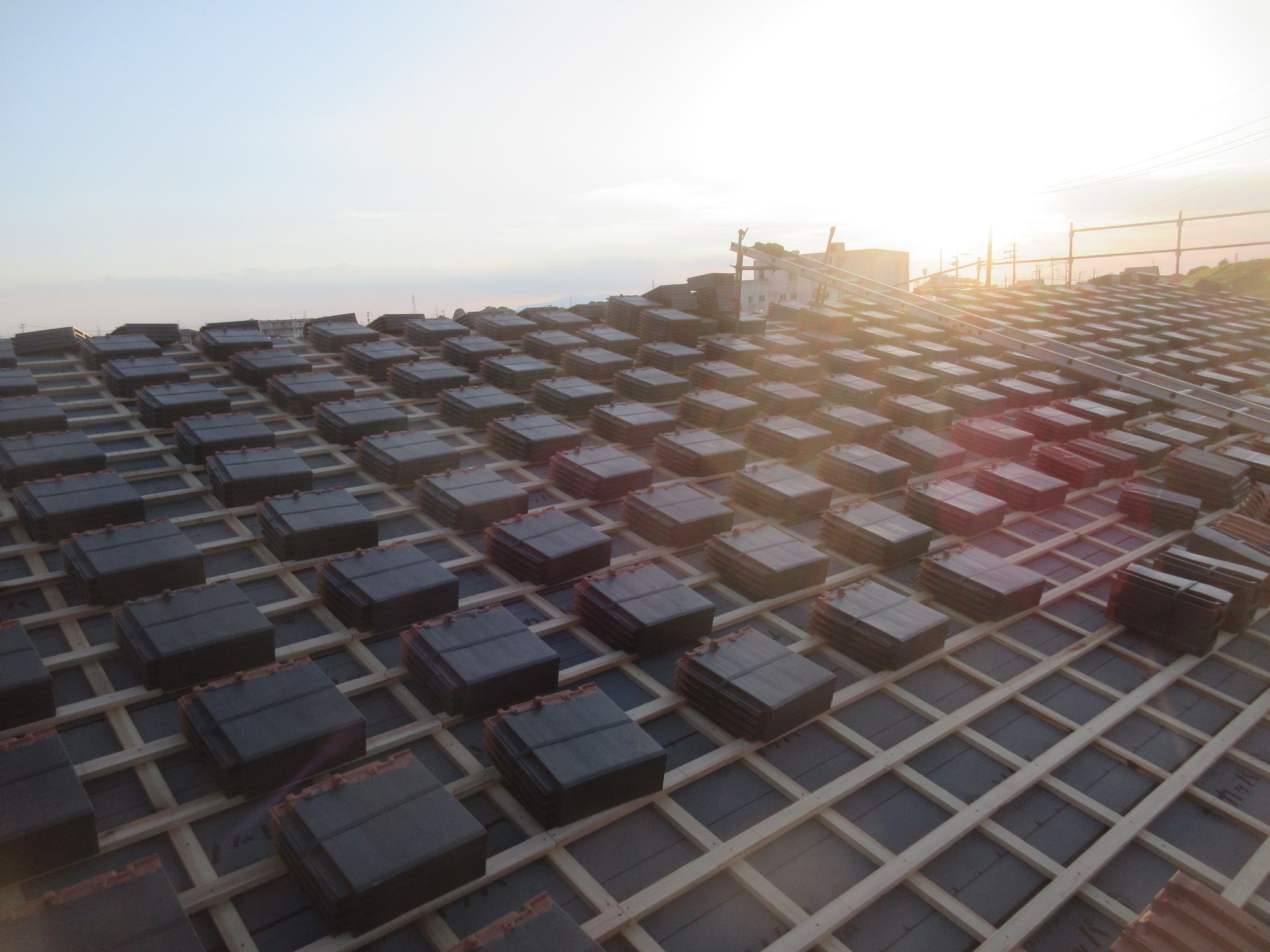 伏せられる瓦は、北面のみですが、全て屋根の上に上げられました。これから、伏せられていきますよ。