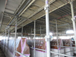 柳川市 N納骨堂様天井改修工事 ですが今日で足場ステージ組が完了しました!