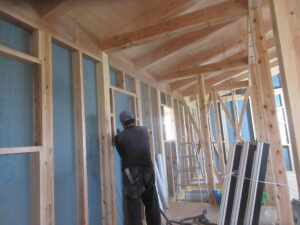 みやま市 モデルハウス新築工事の現場では、天候により内部工事のみが進みました。
