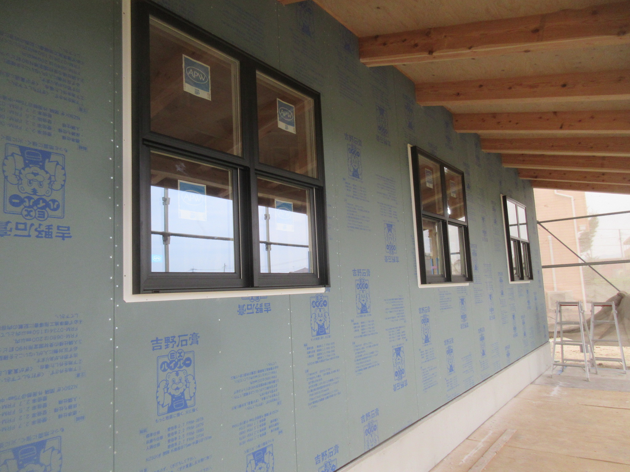 これから、大きな開口部のサッシ枠の取付も進んでいく予定です。