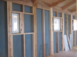 壁ボードを開口して、サッシが取り付けられていきました。