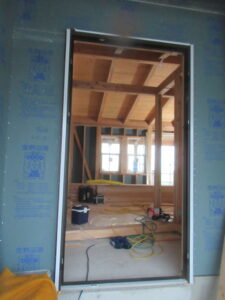 玄関戸の枠が取り付けられました。月曜日に玄関ドアも入る予定です。