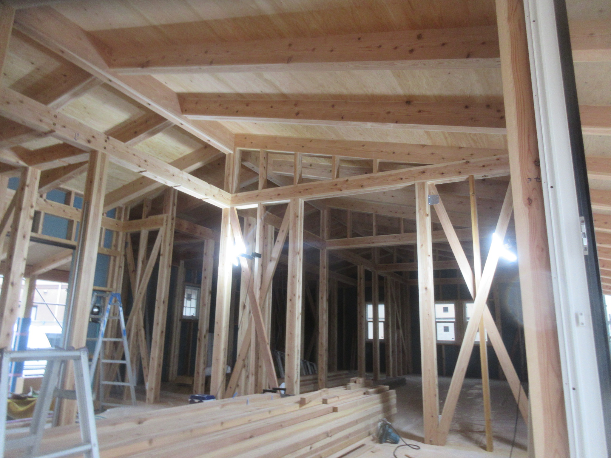 内部木工事は、柱と柱の間に建てられる間柱がしっかりと建てられていきました。
