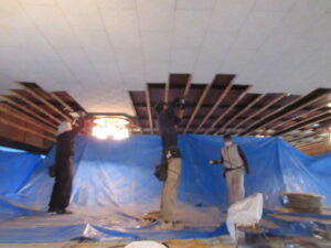 柳川市 N納骨堂様天井改修工事 ですが今日から天井材の解体工事が始まりました!