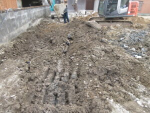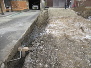 解体工事は、Kガ信工業さん!今日は4人態勢で進めています。隣地境界ブロックの解体撤去が終わりました!明日以降は残土搬出、敷地整正、山砂入れなどを進めていき週末には整地まで完了予定です。T様、引き続きよろしくお願い致します。
