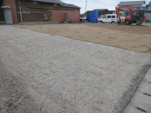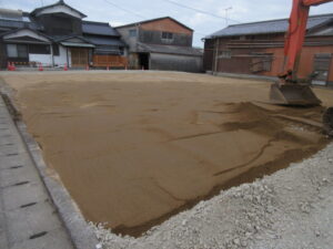 解体工事は、Kガ信工業さんです。今日は最終日!2人態勢で残土の搬出、整地まで完了です。重機は今週中には撤収予定です。今週末までに縄張りをして27日(月)に地盤調査を行います。また境界ブロック積は来週末になりそうです。T様、引き続きよろしくお願い致します。