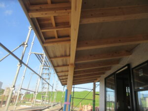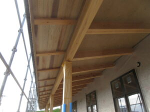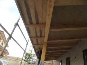 南側と北側の軒天板張りは、ほぼ終わりましたので、明日からは、東側と西側の軒天板張りが進んでいく予定です。