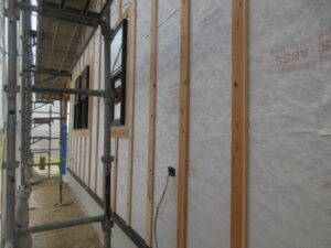 みやま市 モデスハウス新築工事の現場では、外部の木工事が進んでいます。