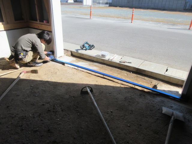 来週、倉庫棟の土間コンクリート打設予定なので、今週末までに下地処理を終わらせます。倉庫内部のレベル出し、道路接続部のすきとり、水替えし用のステンレスアングル入まで完了しました!明日以降、アングル固定モルタル塗り、ポリフィルム敷き、レベルの当てまで終わらせたいと思います。
