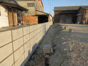 柳川市 T様邸境界ブロック積工事 ですが今日でブロック積工事は完了しました。