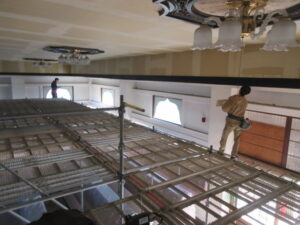 柳川市 N納骨堂様天井改修工事 ですがクロス工事を進めています。