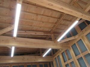 電気設備工事は、U都宮電気さんです。今日は、倉庫棟の照明器具の取付から仮設送電で、照明器具の点灯試験まで完了!です(*^▽^*)