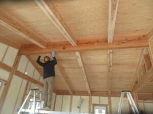 内部は、クリアのオイル塗装。主に登り梁が化粧になります。