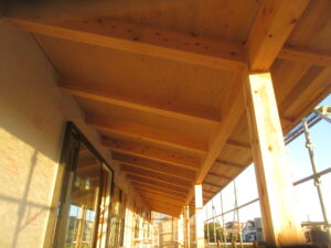 外部では、外壁の板張り工事前に、雨戸の戸袋部分の木工事が進んでいく予定です。