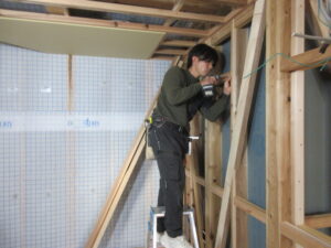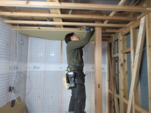 クロス工事は、Tけし美装のM籐さんです。今日は5人態勢で一気にクロス貼が進みましたよ(*^▽^*)