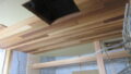 木工事は、河口さんが一人で頑張っています!昨日、納戸の天井の米杉板張りをやっていましたが、今日は点検口まで完成☆彡 既製品の枠を使わずに自作の点検口です!そして、納戸への入口はなんと(≧▽≦) アール開口枠になるようです。これまた仕上がりが楽しみです。K様、引き続きよろしくお願い致します。