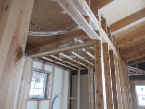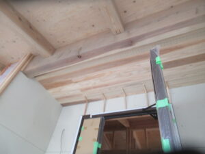 みやま市モデルハウス新築工事の現場では、内外の木工事が着々と進められています。