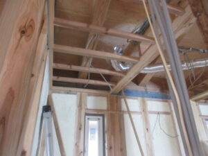 内部木工事は、天井下地ができてきました。