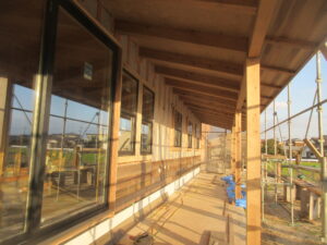 みやま市 モデルハウス新築工事の現場では、黙々と木工事が進んでいます。