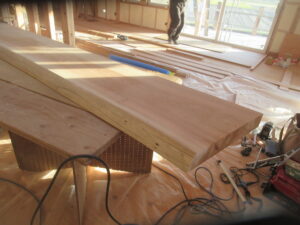 そして、何やら一枚板が、現場に登場。これは、これからどうなるのでしょうか。お楽しみに。