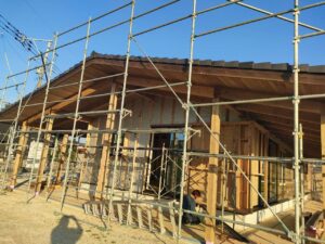 みやま市モデルハウス新築工事の現場では、引き続き、木工事が進んでいます。