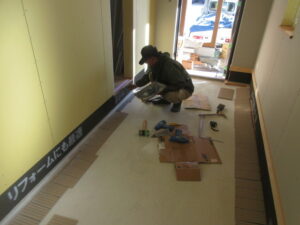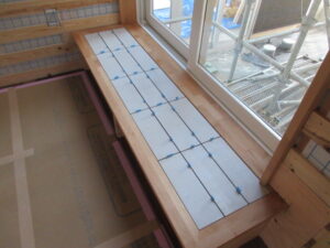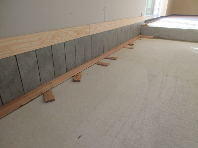 左官工事は、K林工業さんです。今日は玄関土間の立上りタイル張りと寝室の上り段の天端タイル張りが完了です。明日以降、目地詰めをしていきます。来週はいよいよ玄関土間の墨モルタル塗りをやるようです!墨モルタルとは、読んで字のごとくで通常のモルタルに墨(専用の着色墨)を混ぜて黒っぽいモルタルに仕上げます。仕上がりが楽しみですね(*^▽^*) K様、引き続きよろしくお願い致します。
