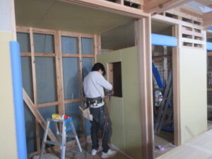 筑後市 K様邸新築工事 ですが今日は、木工事、左官工事を進めています。