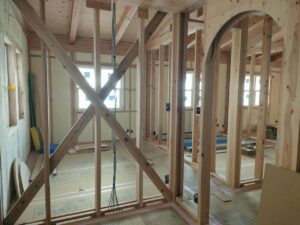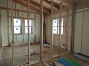 これから、内部の木工事も進む予定です。窓枠や、建具枠が取り付けられていきます。