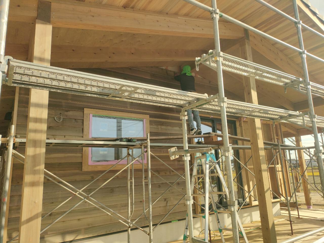 外壁工事の板張りのラストスパートです。