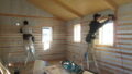 T取大工さんにより、建具枠の取り付けが進められています。枠は、事前に加工して、塗装していました。