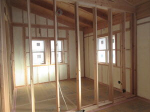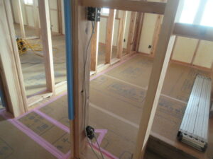 みやま市モデルハウス新築工事の現場では、内部木工事が、引き続き進んでいます。