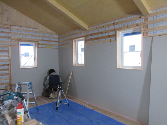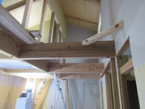 木工事は、河口さんです。今日は一人での作業となりました!2階のフレキシブルスペース(将来子ども部屋)の壁はスカットボード仕上げです(*^▽^*) いつもより丁寧にカットしてビスのインパクトで一本づつ打って仕上げて行きます。そして吹抜部分の仮足場が撤去されました!構造材の塗装を進めます。22日(月)には内部足場組があります。K様、引き続きよろしくお願い致します。