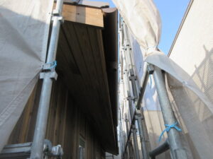 樋工事は、Tナカ板金さんです!この樋はタニタの鋼板といです(*^▽^*) 南面は足場にあたって取付られないので月曜日にやります。K様、年内頑張ってメド付けたいです。引き続きよろしくお願い致します