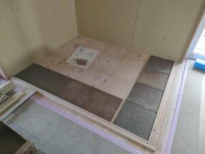 薪ストーブを置く部分の床には、タイルを貼るようになりました。タイルが届きましたので、仮置きをしてみました。一枚一枚、少しずつ、色の見え方が違うところがまたいい感じになりそうですね。