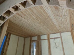 建設中ではありますが、室内に入るとほんのり暖かく感じます。そして、静かです。断熱・気密性能の効果だと思います。