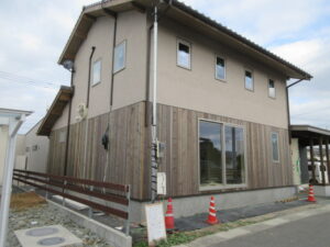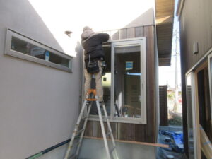 外壁木工事は、村崎さんとT中大工さんコンビで最終張り終わってくれました!現場の片付け、残材撤収まで完了しました。これで外部は9割方完了です。樋工事、太陽光工事、電気設備工事、左官工事が残っています。