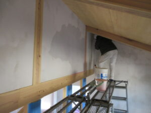 左官工事は、K林工業さん!今日は社長一人でしたのでできる部分の下地塗りとエコキュート、蓄電池、室外機の架台の下塗りまで完了!月曜日に吹抜部分の一面の残りの下塗り完了そして火曜日くらいに架台モルタル仕上げまで完了で今年の仕事は終わりとなります。K様、今年はお世話になりました!来年はいよいよお引渡しとなります。最後まで引き続きよろしくお願い致します。
