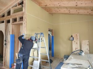 内部工事は、タイル張り工事、家具製作や建具製作、そして、塗り壁工事が進んでいく予定です。