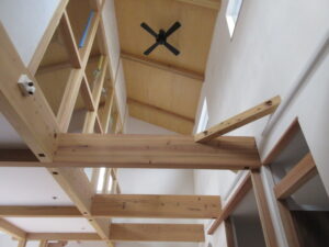 吹抜の足場の解体をT和さんがやってくれました!足場がとれてスッキリ広々となりました(≧▽≦)